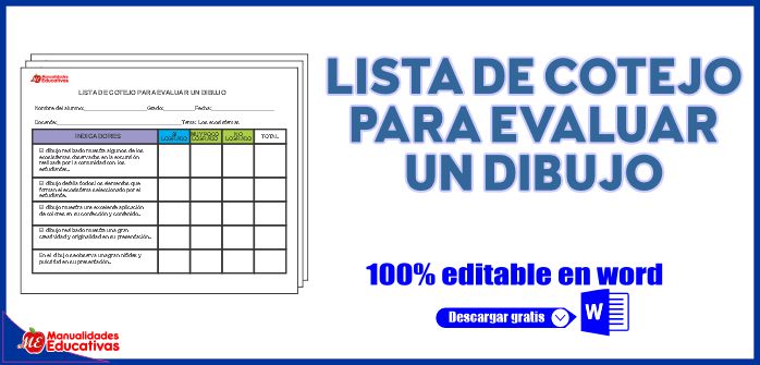 LISTA DE COTEJO PARA EVALUAR UN DIBUJO. DOCUMENTO EDITABLE EN WORD. Descargar final del POST.