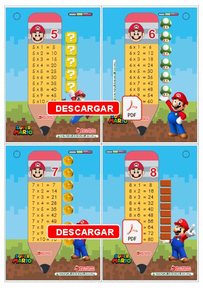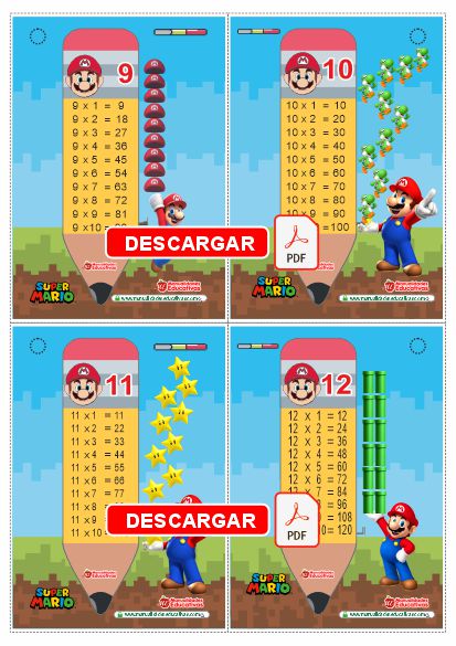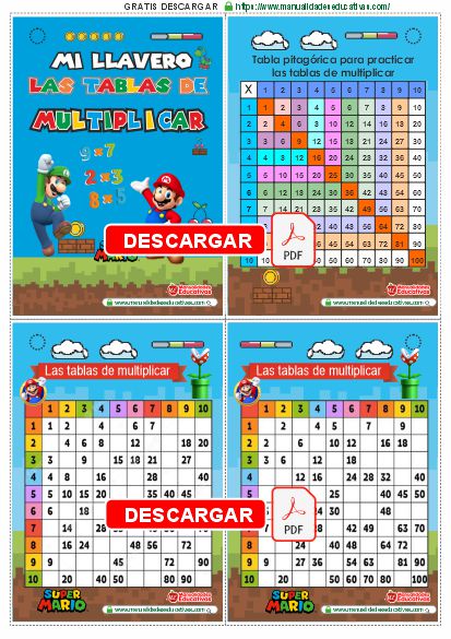 Llavero de Tablas de Multiplicar Mario Bros. Documentos en PDF
