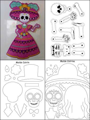 Moldes de catrin y catrina para manualidades. Documento en formato pdf.
