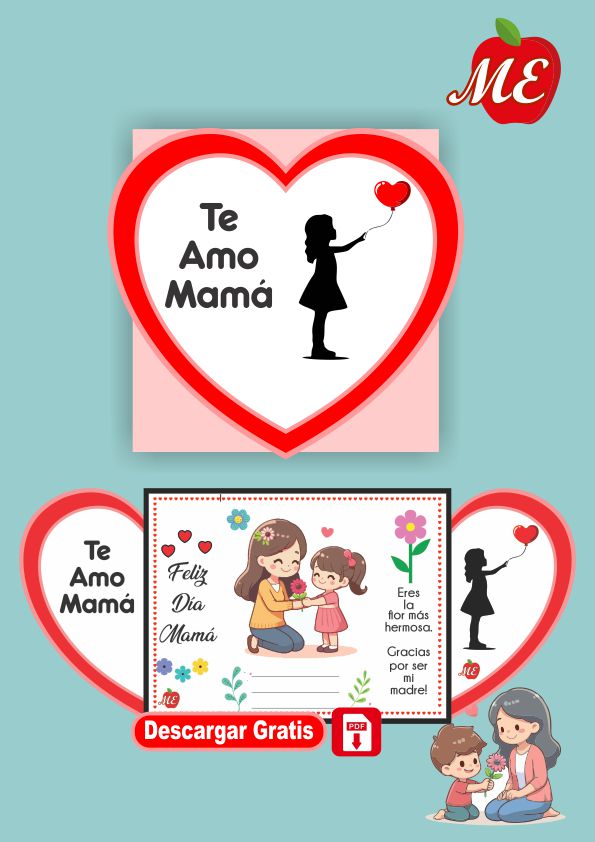 Crear una tarjeta de invitación para el Día de la Madre es una forma hermosa y personal de celebrar a las madres, abuelas o figuras maternas en su día especial. Están diseñadas de manera digital en forma de corazón. A continuación, te comparto tarjetas prediseñados para imprimir, recortar y doblar.