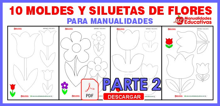 10 MODELOS DE MOLDES, PLANTILLAS Y SILUETAS DE FLORES PARTE 2 . Documentos en PDF