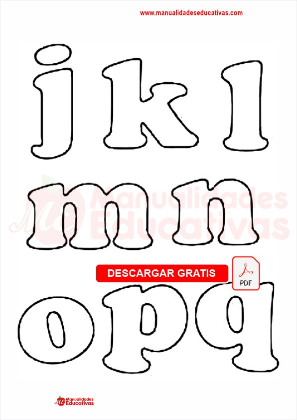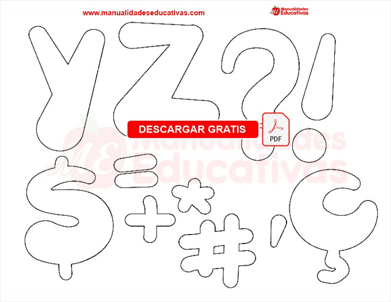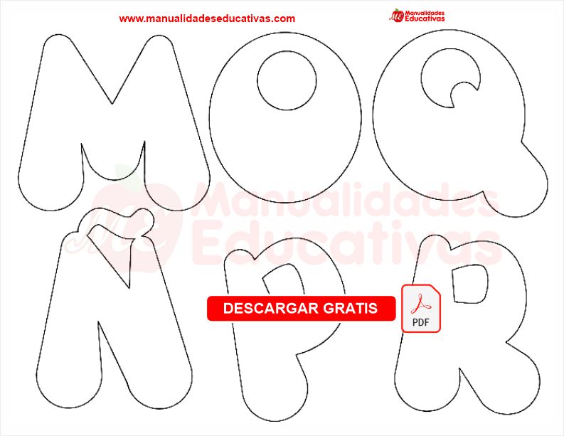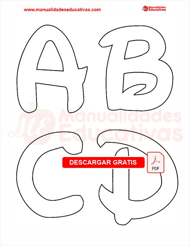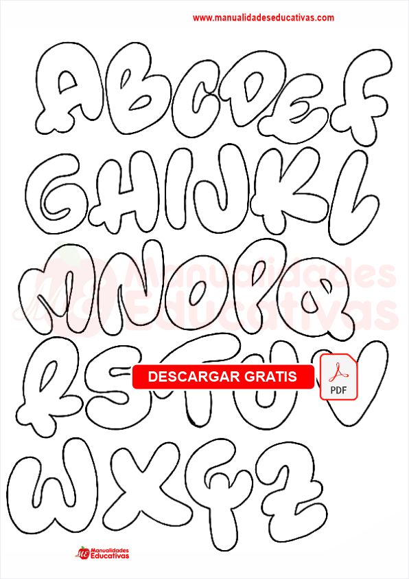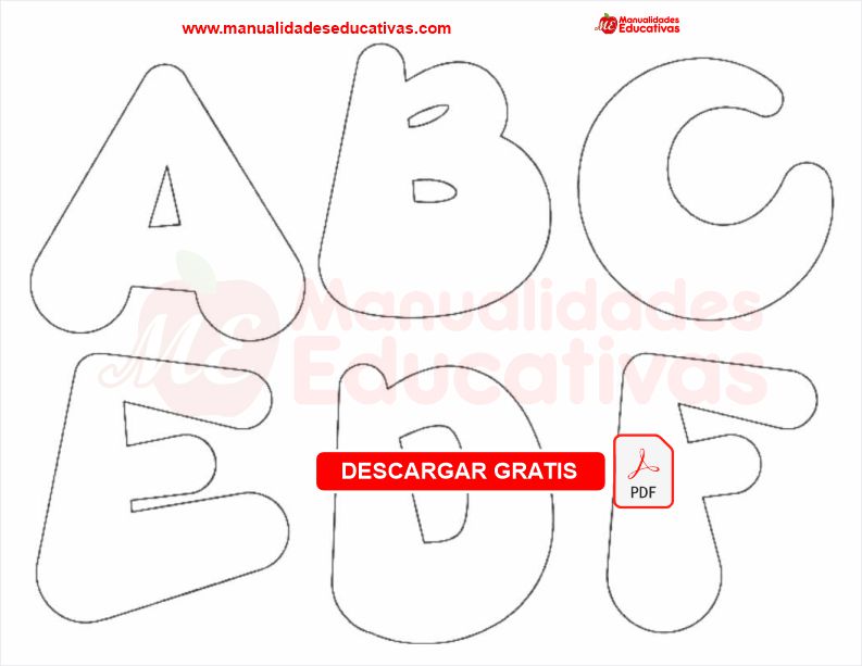 Moldes de letras para goma eva. Documento en PDF.
