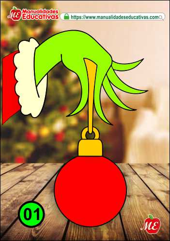 Características: Se utiliza cartulina o papel para hacer un círculo plegado (rosetón) y se le pega el rostro del Grinch recortado.