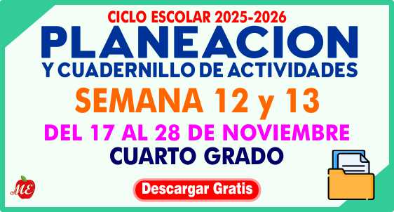 Planeación y cuadernillo semana 12 y 13 Cuarto Grado