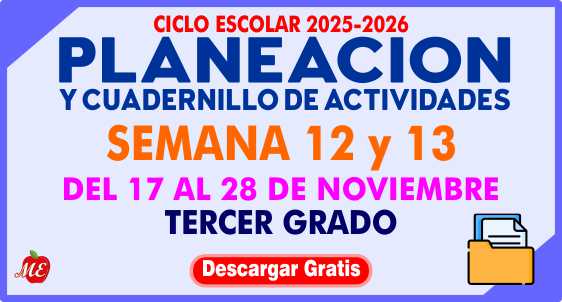 Planeación y cuadernillo semana 12 y 13 Tercer Grado