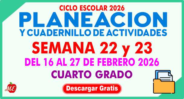 Planeación y cuadernillo de actividades semana 22 y 23 Cuarto Grado 2026, TOMO I, TOMO II y TOMO III