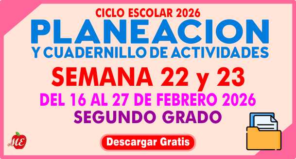 Planeación y cuadernillo de actividades semana 22 y 23 Segundo Grado 2026, TOMO I, TOMO II y TOMO III