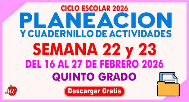 Planeación y cuadernillo de actividades semana 22 y 23 Sexto Grado 2026 – Tomo I y Tomo II