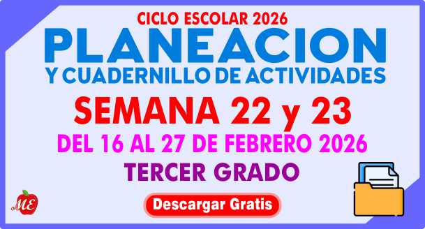 Planeación y cuadernillo de actividades semana 22 y 23 Tercer Grado 2026, TOMO I, TOMO II y TOMO III