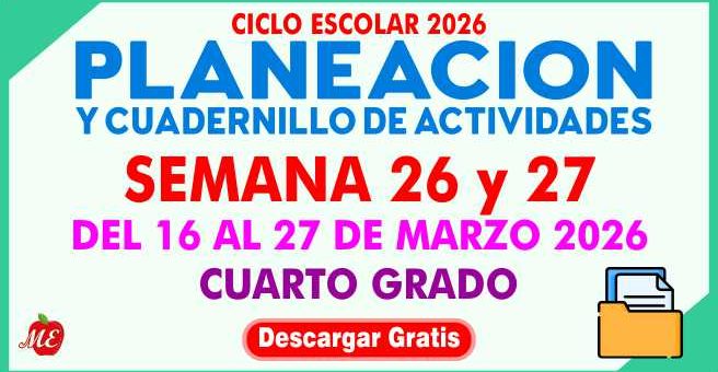 Planeación y cuadernillo de actividades semana 26 y 27 Cuarto Grado 2026, TOMO I, TOMO II y TOMO III