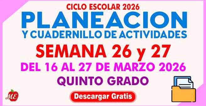 Planeación y cuadernillo semana 26 y 27 Quinto Grado