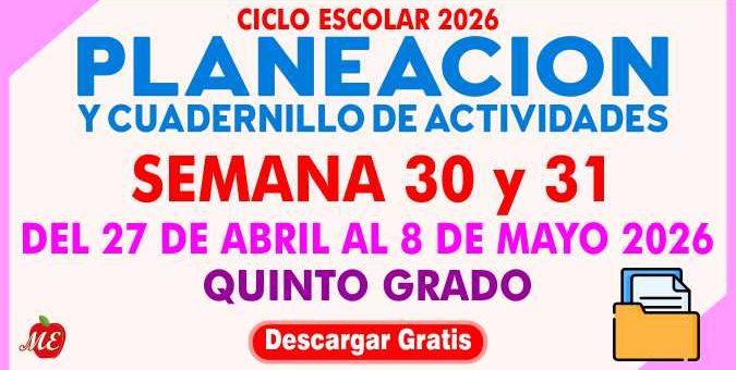 Planeación y cuadernillo semana 30 y 31 Quinto Grado
