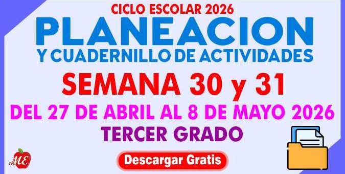 Planeación y cuadernillo de actividades semana 30 y 31 Tercer Grado 2026, TOMO I, TOMO II y TOMO III