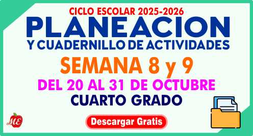 Planeación y cuadernillo semana 8 y 9 Cuarto Grado