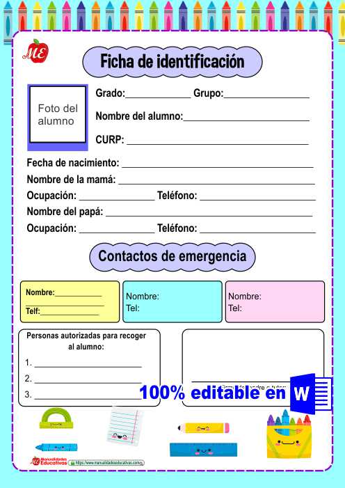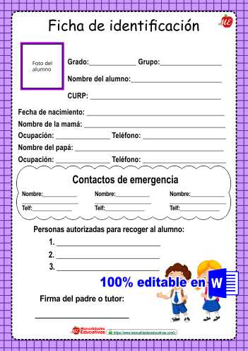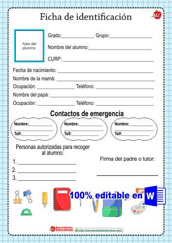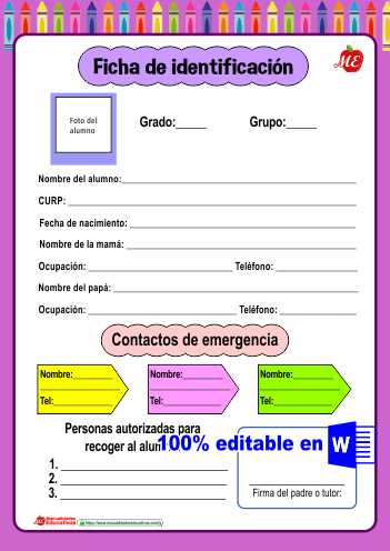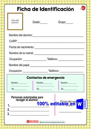 Ficha de identificación del Alumno. Documentos Editables en WORD.