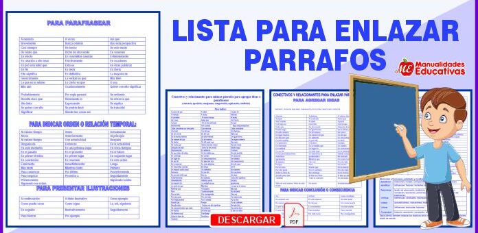 5 ARCHIVOS EN PDF: LISTA PARA ENLAZAR PARRAFOS: CONSTRUCCIONES PARA ENLAZAR PÁRRAFOS Y/O ORACIONES DENTRO DE LOS PÁRRAFOS