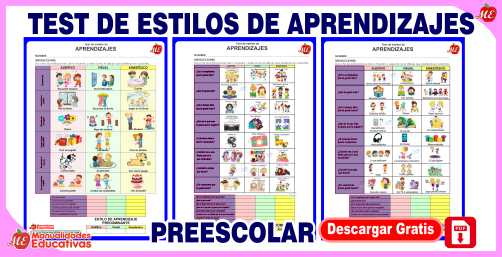 TEST DE ESTILOS DE APRENDIZAJES PREESCOLAR. Documentos en formato PDF.
