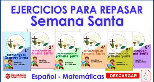 Cuadernillo para repasar en Semana Santa 1°, °2°, 3°, 4°, 5° 6°. Este material didáctico está dirigido para maestros y padres de familia y que quieran dejar actividades por Semana Santa a los pequeños de la casa. Son ejercicios divertidos para que desarollen en vacaciones, el documento se encuentra en formato pdf de alta calidad para imprimirlos en casa, ideales para colorear y aprender sobre estas festividades religiosas.
