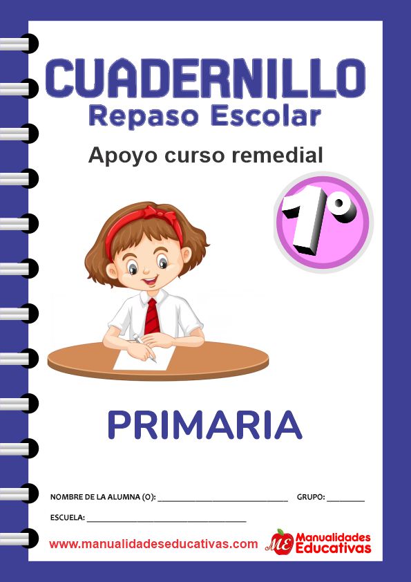 Cuaderno de apoyo repaso escolar 1° primaria. Documentos en PDF y WORD