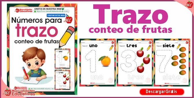 Excelentes fichas para trabajar con niños de 3 a 5 años. Trazo conteo de frutas