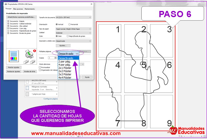 Excelente tutorial para los maestros, docentes, profesores y padres de familia, para que ya no tengan la dificultad de estar imprimiendo con complicaciones con las hojas. Con este manual-guía se guiará de como debe ser impreso en varias hojas y unir en una sola imagen y utilizar como molde, plantilla, poster, cuadros, etc.