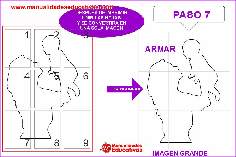 Después de imprimir unir las hojas y se convertirá en una sola imagen (magen completo)