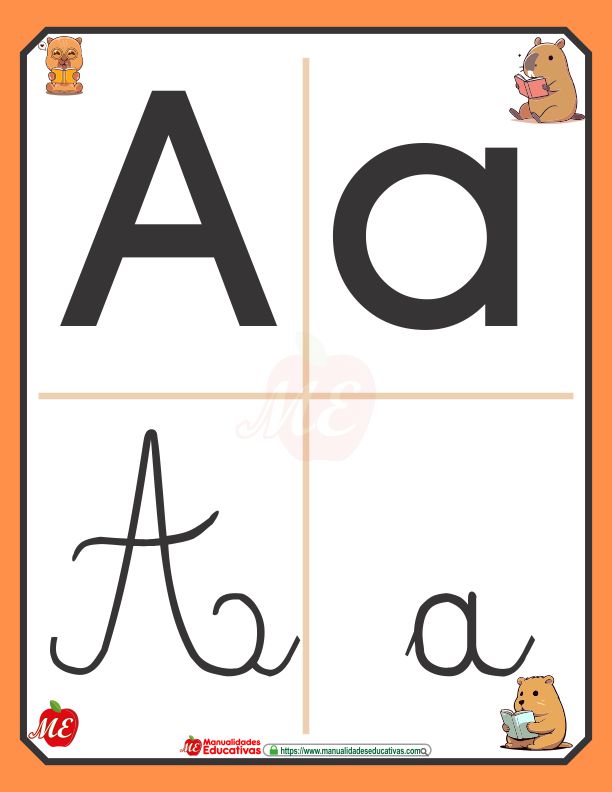 Lamina del Abecedario, ideal para conocer y aprender el alfabeto desde su escritura minúscula y mayúscula