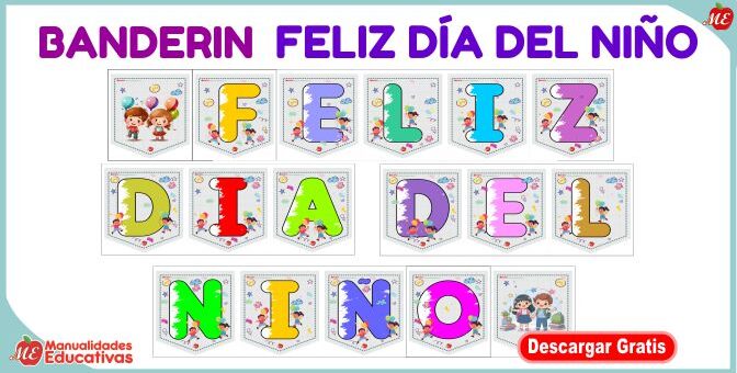 Banderines para formar la frase: “Feliz día del niño” (MAYÚSCULAS)