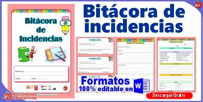 Bitácora de incidencias. Formatos 100% Editables en Word.