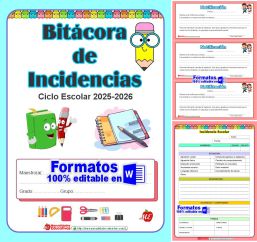 Bitácora de incidencias. Formatos 100% Editables en Word.