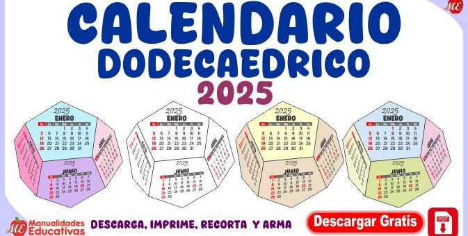 4 Modelos de Calendario dodecaédrico 2025. Documento en PDF