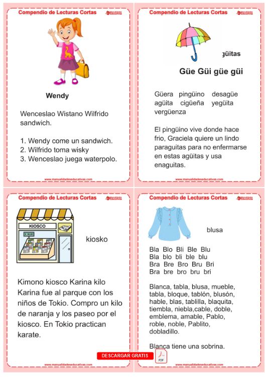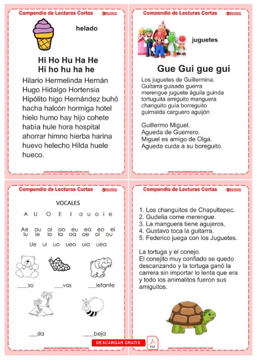 Hoy les comaprtimos excelentes fichas de 60 lecturas cortas para niños en formato PDF. Sólo necesitas descargar e imprimir. Estas fichas contiene lecturas divertidas para el dominio de la lectura y donde trabajaremos la comprensión lectora con los niños. Actividades de lecturitas cortas para practicar la lectura con los pequeños y desarrollar su comprensión lectora con divertidas aventuras de textos cortos. Cuentos de animales, personas. etc.