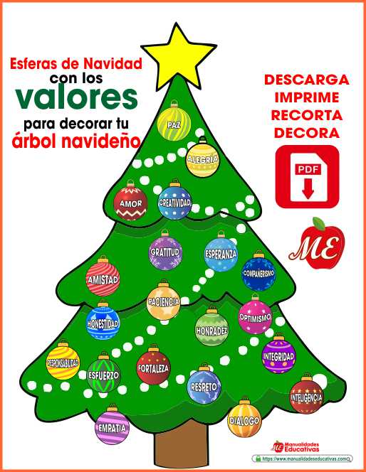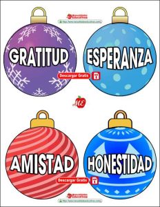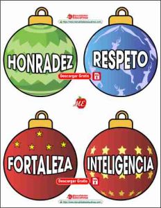 19 Esferas de Navidad con los valores para decorar tu árbol navideño. Plantilla completo en PDF