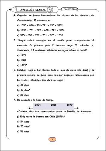 Las evaluaciones tipo ECE para 4.º grado de primaria se centran en las competencias y capacidades del enfoque de resolución de problemas e incluyen temas como: