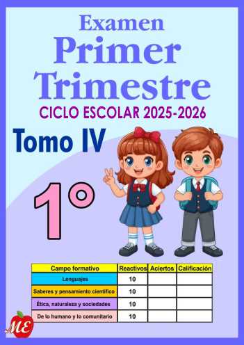 Exámenes del primer trimestre ciclo escolar 2025-2026 – Tomo IV. También examen de conocimientos. Estas evaluaciones son una herramienta de mucha importancia en el proceso educativo de cada grado y asignatura (áreas). Los exámenes diagnósticos se realizan por trimestre con el objetivo de evaluar el nivel de comprensión previo de los estudiantes en relación con los contenidos que se abordaron en las clases de agosto a octubre.