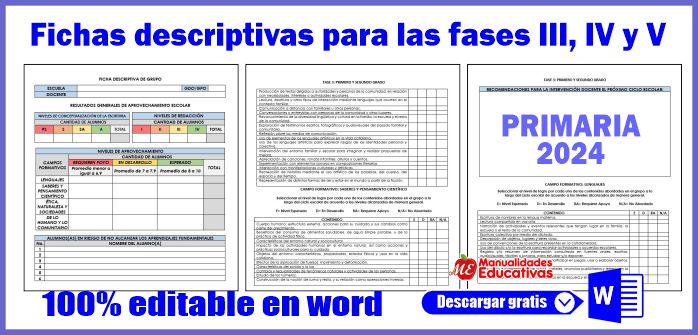 Fichas descriptivas para las fases III, IV y V. Formatos Editables en Word.