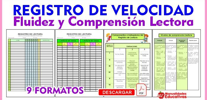 FORMATOS REGISTRO DE VELOCIDAD, FLUIDEZ Y COMPRENSIÓN LECTORA. Documentos en formato PDF.