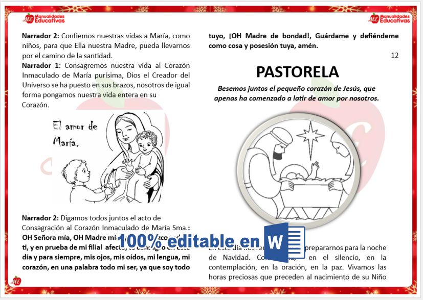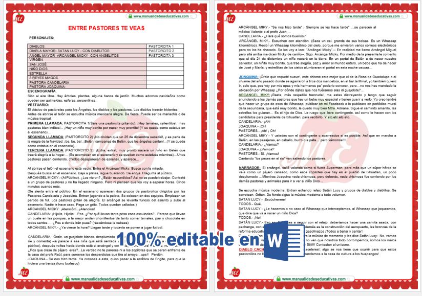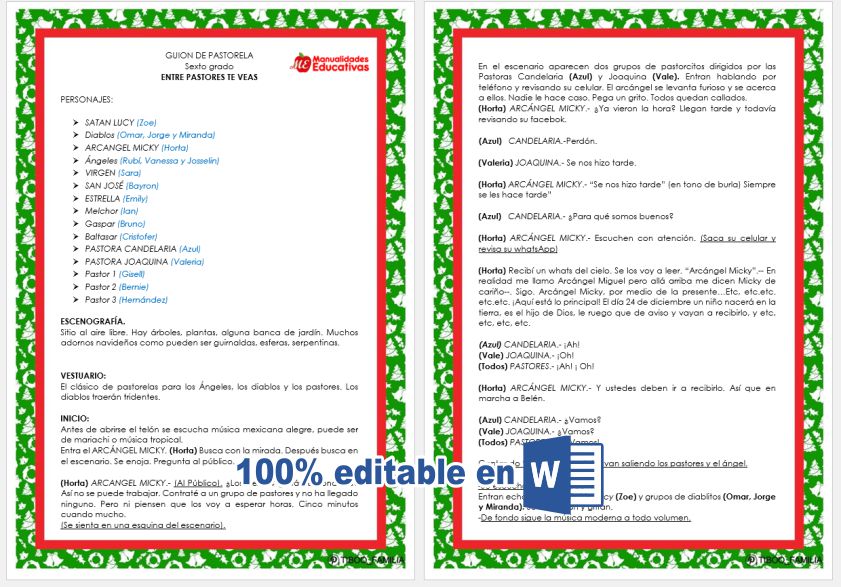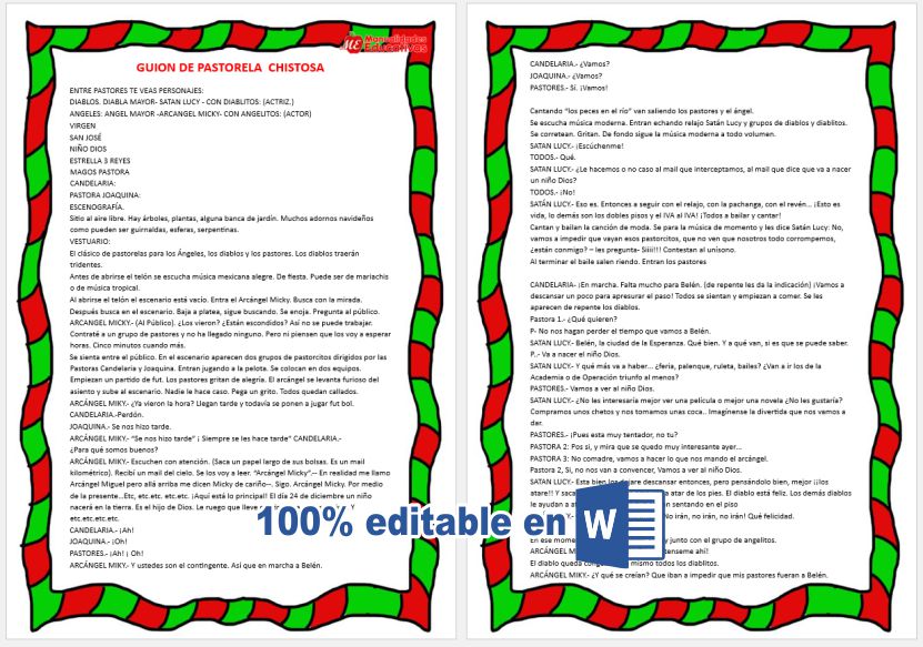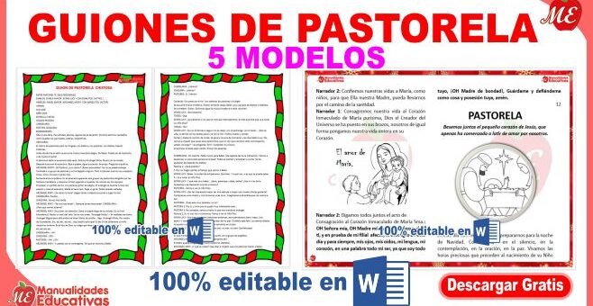5 modelos de guiones de pastorela para niños de preescolar y primaria 2024. Archivos editables en WORD