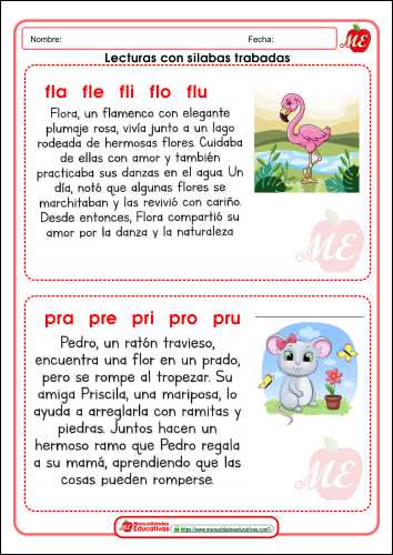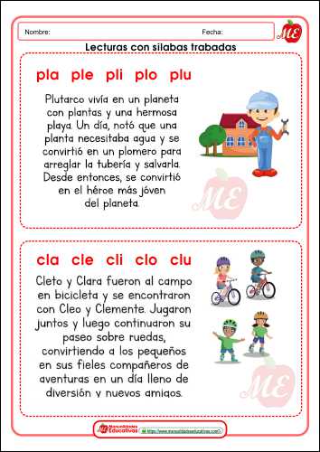 Lecturas cortas con sílabas trabadas