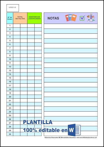 Lista de Asistencia Escolar para 35 a 40 Alumnos – Ciclo Escolar 2026