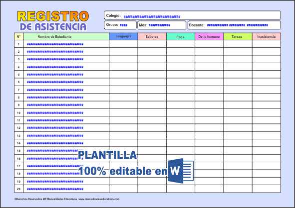 Lista de Asistencia Escolar para Alumnos 2026. Documentos en formato WORD.