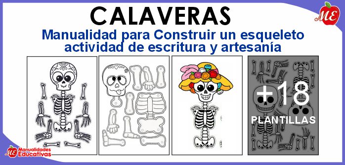 18 modelos de esqueletos. Plantillas y moldes de Esqueleto para colorear, recortar y armar con niños de preescolar.