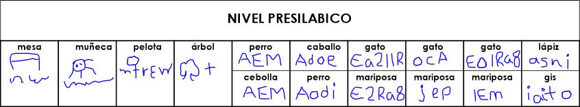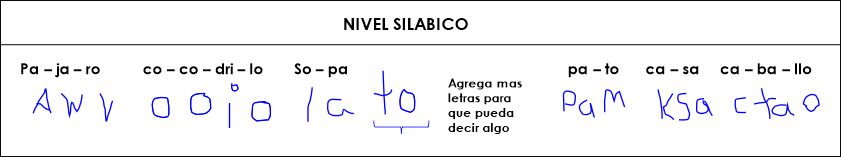 Hipótesis silábica con alfabética, utilizandoo no letras convencionales.