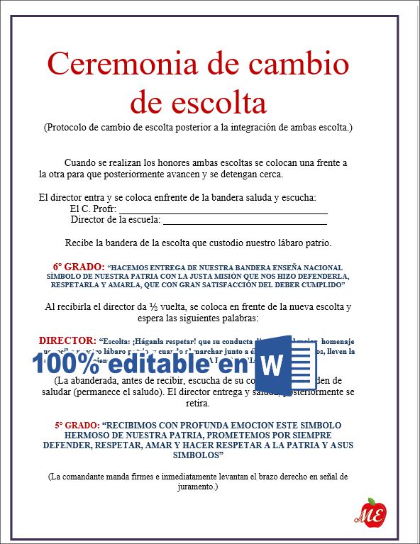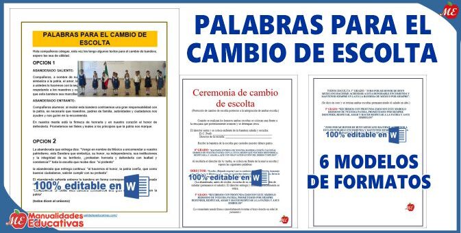6 MODELOS DE FORMATOS (PALABRAS PARA EL CAMBIO DE ESCOLTA PREESCOLAR Y PRIMARIA.