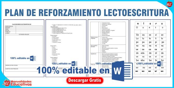 PLAN DE REFORZAMIENTO LECTOESCRITURA. ARCHIVOS 100% EDITABLE EN WORD.