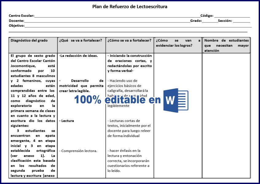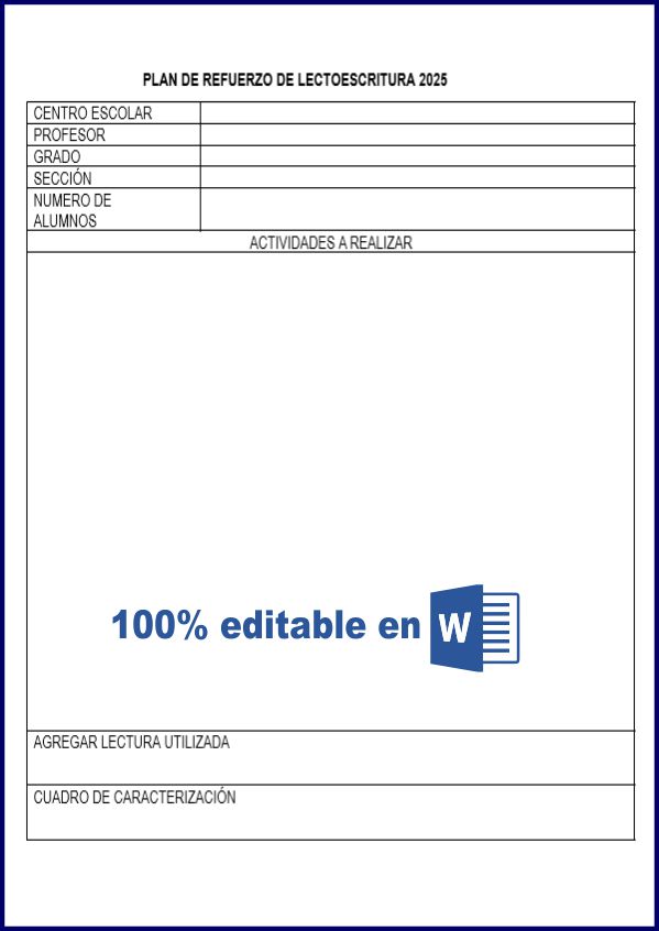 PLAN DE REFORZAMIENTO DE LECTOESCRITURA PARA PRIMARIA. FORMATOS 100% EDITABLE EN WORD.