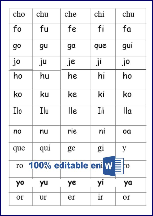 Sílabas simples (ma, pa, la, etc.).