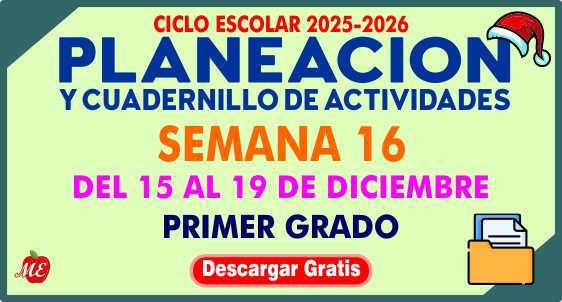 Planeación y cuadernillo semana 16 Primer Grado