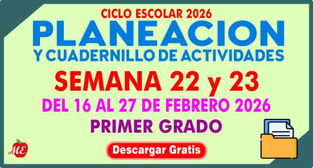 Planeación y cuadernillo de actividades semana 22 y 23 Primer Grado 2026 – TOMO I, TOMO II y TOMO III
