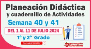 Planeación y cuadernillo de actividades Semana 40 y 41 Primero y Segundo Primaria Ciclo Escolar 2024